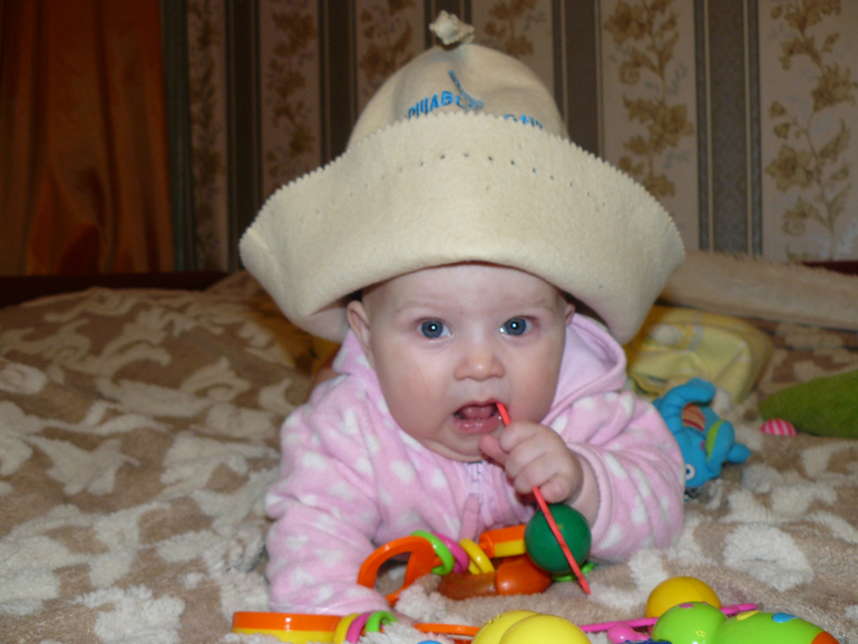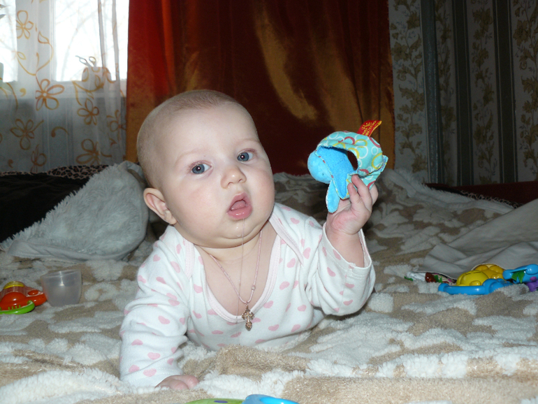 Мне интересно у тебя читать ваши достижения, так как идем за вами по пятам, но моя звезда в 3 мес еще малышка и не верится, что через полтора месяца моя будет вот такой уже "взрослой". Ростите здоровенькими