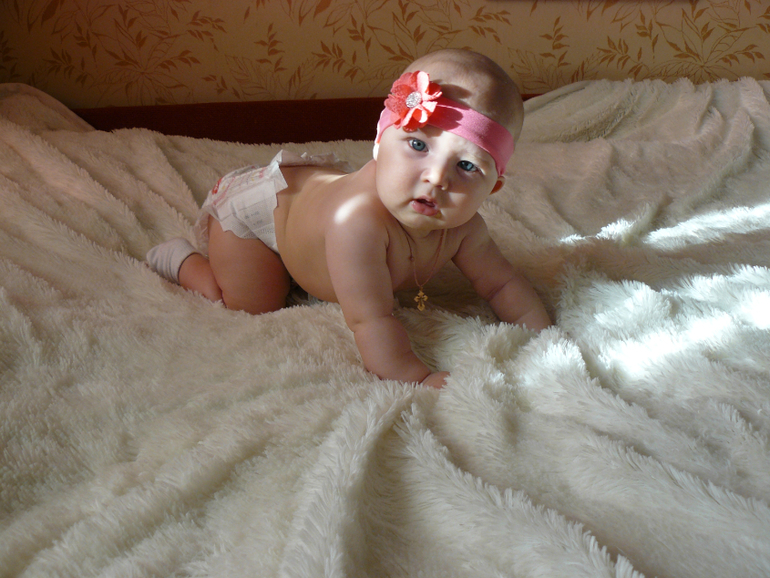 Поздравляем !!!! Какая пампушечка!!!!славная очень и какая молодчинка, уже ползает!!!! Новых умелок вам!!!