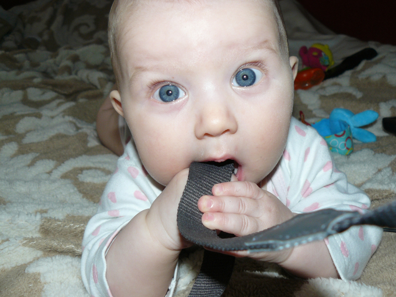 Лезет первый зуб, все что попадает под руки сразу оказывается во рту.