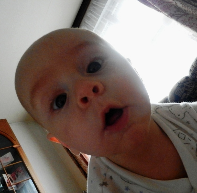 Недавно читала, как дети в 7 месяцев говорят "Мама-папа", в 6 отдельные слоги, и думала, "Ну-ну, какие мамы фантазёрки"А Ярослав взял и заговорил "Дя-дя-дя". Потешно, слов нет!