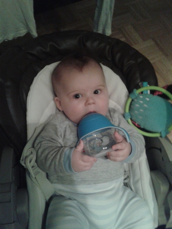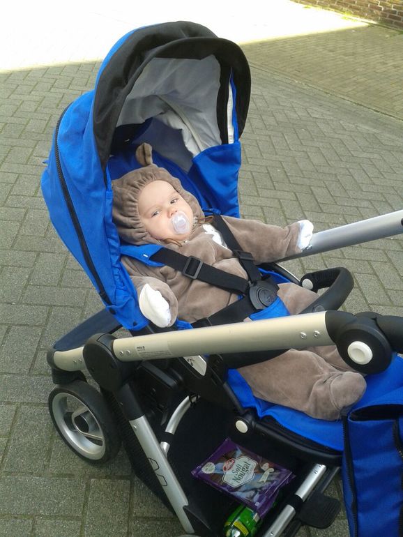 Сегодня опробовали прогулку, особого восторга она у нас не вызвала, кап маловат, солнышко нам мешало.