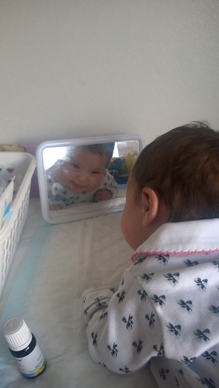 ХвастаемсяОчень хочется похвастаться и может кому то пригодится. Последние время у нас были проблемы с лежанием на животике и дерзанием головки в такой позе. Столбиком держала, а вот на животике было лень.раньше и на животике очень хорошо держала головку, но после того как мы боролись за наше молочко и почти постоянно высели на сисе, мы выкладывались реже, вот Злата и подзабыли как это делаеться( что я только не пробывала за последние две-три недели, чтоб лапуля подержала головку или хотя бы немножко полежала на животике. Не помогало, только на живот - Злата сразу в плач. Несколько дней назад нашла на ютубе видео с советами как поддерживать малыша в такой позе, немножко сдвиги в лучшую сторону начались. Но сегодня был просто кайф. Как я раньше не додумалась??? Положила Златочку на живот на пеленальном столик и перед ней поставила свое зеркало для макияжа. Мы лежали так минут 5 и улыбались себе!!!!!) не было слез, нервов, недовольства. Были улыбки и счастье)))