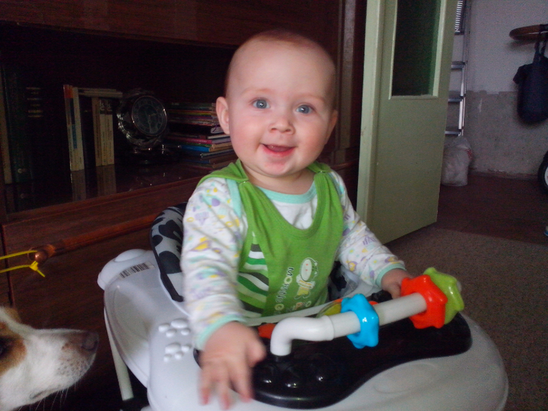 Убирала перед Пасхой на балконе, споткнулась о коробку с ходунками и решила их собрать. Ярик побыл в них всего минутку, оценил игрушки, попозировал, а потом ползал по полу, держась за них руками - ему понравилось)) У сестры моей все дети месяцев с 4х в ходунках по пол дня проводили, младший свои уже сломал (а он всего на две недели нас старше), а мы решили, что лучше так не спешить. Пусть сыночка стоять хорошо научится, там и посмотрим. Так что, разобрала я их, сложила обратно в коробку и опять на балкон поставила.