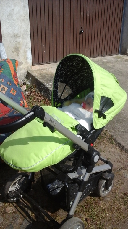 Прогулка стоит на базе, к которой еще и автокресло есть. Поскольку мы живем на три страны и летаем много, а самолете скоро угрохают мою колясочку. Вот такая она моя хорошая