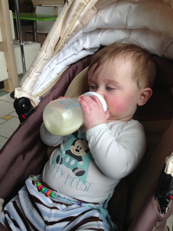 Вчера наш папа работал, поэтому мы гуляли втроём-я, сынишка, бабушка))) Гуляли далеко от дома, зашли потом в ТЦ, там в кафе зашли перекусить и Максимку покормить, хорошое место оказалось для походов с детьми, еду ждать не надо, выбераешь из готового и кушаешь)) Также есть комната где поменять памперс малышу)) Вообщем нам понравилось, будем чаще выбераться)
