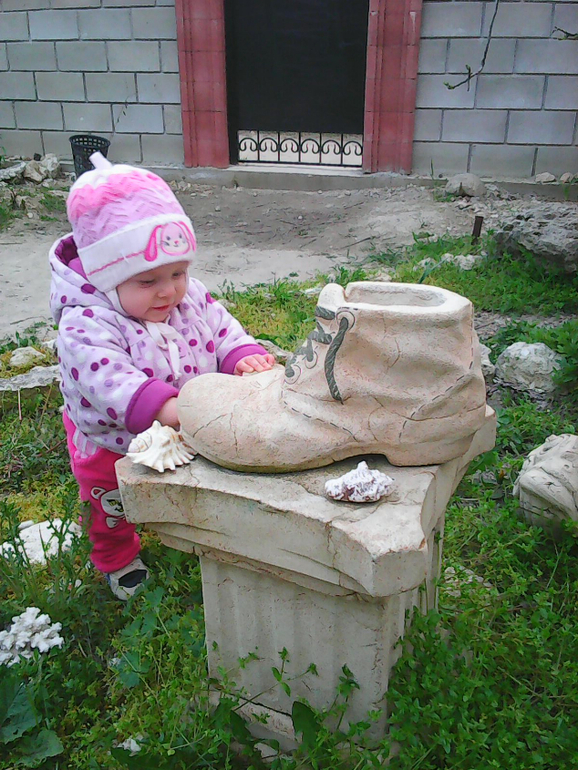Поздравляю Таисию! Доченька большая молодец! Уже бегает вовсю, шилопопик маленький))) В саду у вас такие скульптуры интересные, вы их сами покупали?