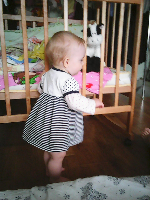 Бегаем за одну ручку) и теперь это самая любимое занятие БЕГАТЬ((((( по всем комнатам нас матает)))) все уже по очереди с ней ходим))))