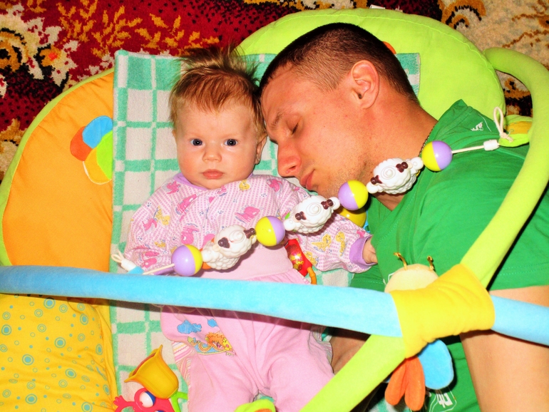 Вообще она всем поспать дает если очень хочется)))папа дремлет после работы)))