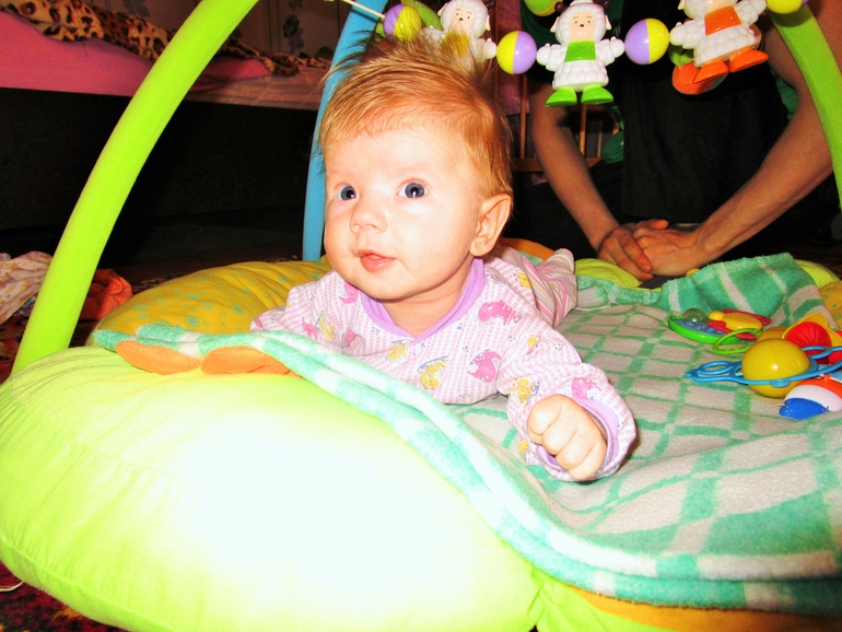 умничка девочка! такая лапочка) и волосики такие длииинные))) здоровья вам) моему младшему 4 месяца.. тоже уже в рот тащит) у них так всё познаётся — через ротик..)