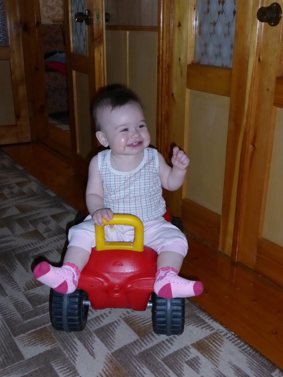 Самое главное достижение прошлого месяца- Катюша пошла! В 10,5 месяцев сделала первые шаги, за 2 недели отточила свое мастерство, ходит уже уверенно и на большие расстояния.Не скажу, что теперь стало легче... Ручки с дверц шкафчиков сняты, цветы по подоконникам, всё на потолке... Но так прикольно, когда стоишь например моешь посуду, а она обнимает тебя за ноги и смотрит своими чистыми глазками : "Мама, возьми меня!!!"