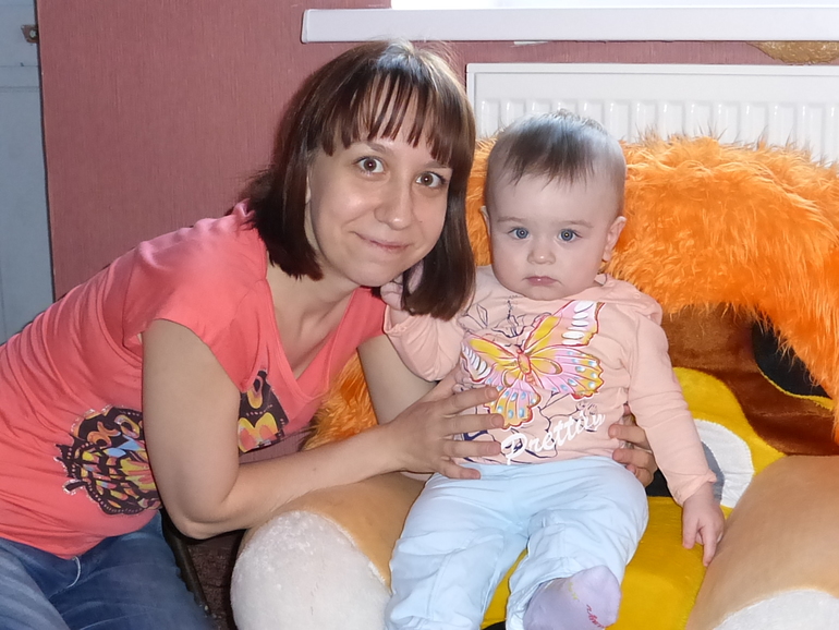 Катюша очень любит детей, тянется к ним, смеется, трогает, очень интересно наблюдать. К взрослым незнакомым не идет совсем и отворачивается.