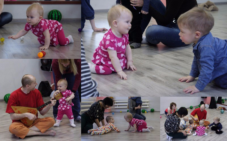 Ходим на музыкальные занятия,пока со всеми не перезнакомится не успокоится))