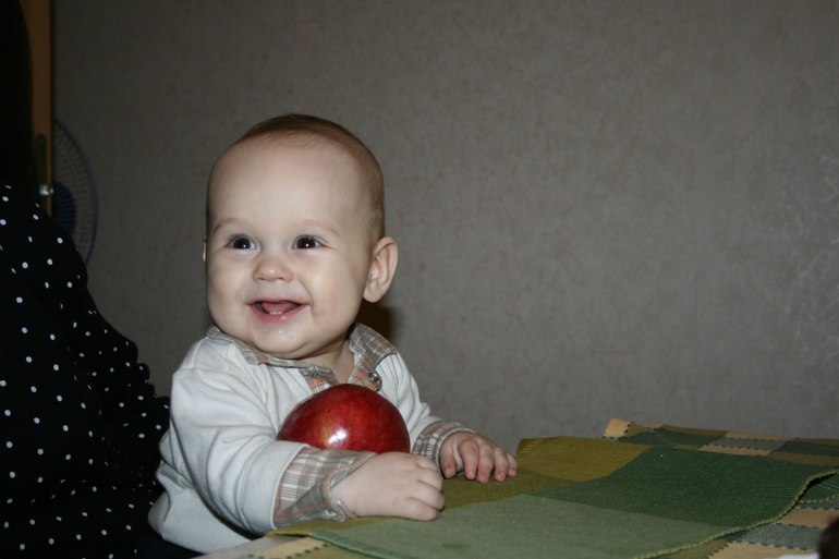 Очень активный, везде лезет, все смотрит, трогает, жует. Ничего не боится!