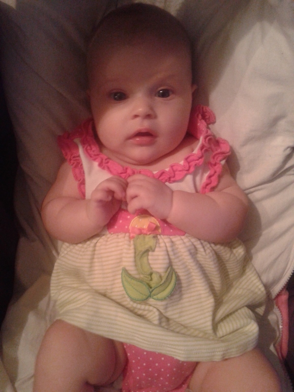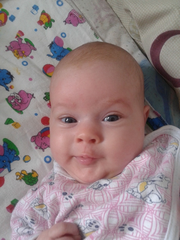 Очень симпотичная у Вас дочка, да и вся семья. С 3-мя месяцами, дочке успехов, пускай скорее поправляется,а Вам спокойных ночей!