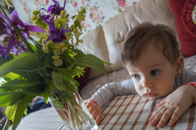 Погода уже неделю стоит ужасная и гулять нормально не получается, так что ходим по гостям. Сегодня были у бабушки с дедушкой, немного пофотографировались. Не обращайте внимание на мои брови, 2 дня назад сделала коррекцию))