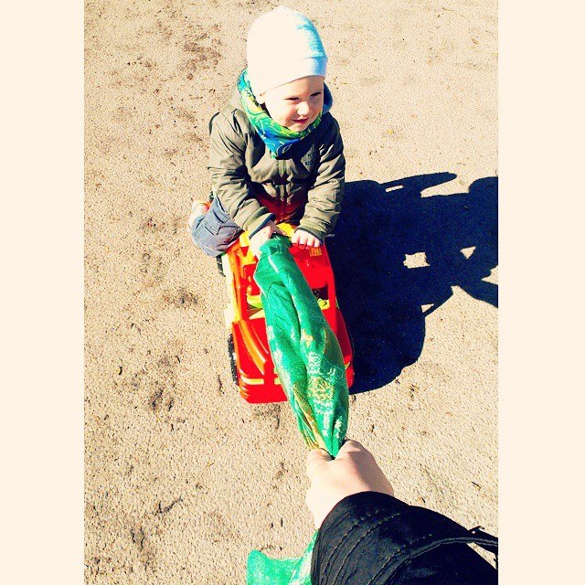 -гуляем на площадке, играет в песочнице, интересно с детками постарше