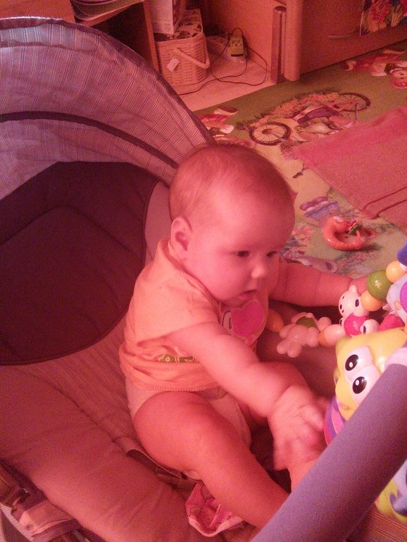 Физическое развитиеПолзать Олеся пока не умеет, хотя и пытается, а вот садиться засчет пресса активно пытается