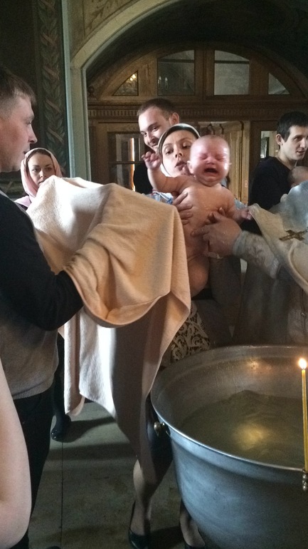 Яна вела себя очень хорошо, не плакала, не капризничала, все разглядывала, все ей интересно )))) Заплакала она только после купели, это вообще отдельный кадр ))))