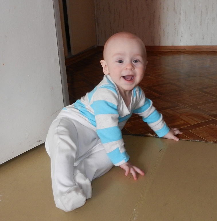Забыла такое важное, Ярик сидит! С опорой на руку вообще отлично, без рук неуверенно, но с безумно довольным видом.