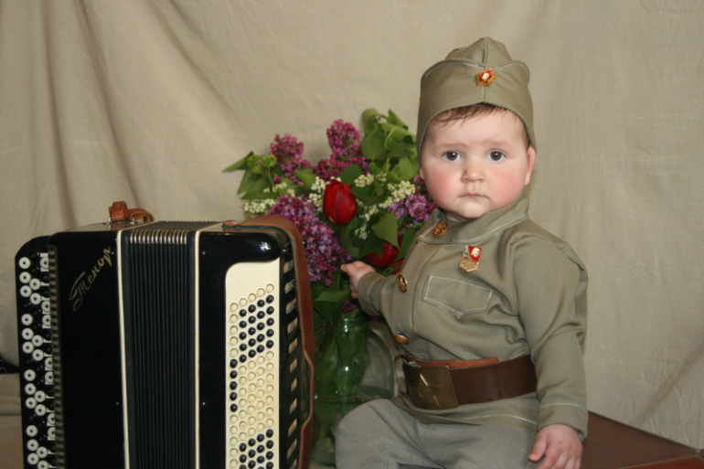 Абалдеть! Я сначала подумала это открытка с интернета скачена. А это ваш сыночек...да еще и вы сами наряд сшили... Круто!!!! Слов нет!!! С днем победы!