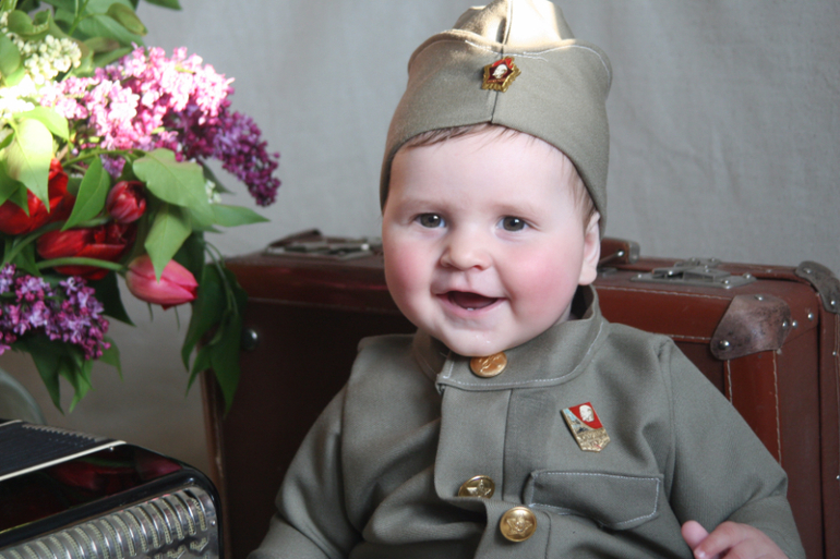 Супер!!! Как мне нравятся фотки с детками в форме! Это так трогательно и патриотично!!! Нужно помнить о наших дедушках-бабушках героях! Только Великой Отечественной, а не Второй Мировой как сейчас все перевернули!Лапулька!