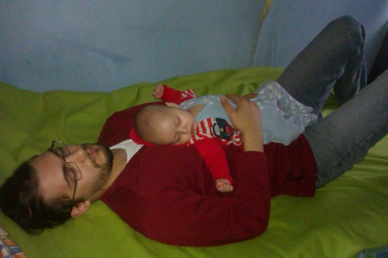 Мы хоть и спим все вместе, но в капризные вечера, когда болит животик или ещё что-то, у меня просто опускаются руки. Отдаю наше сокровище папе, и у него всегда чудесным образом получается уложить спать, не прилагая почти никаких усилий, сидя в ноутбуке.