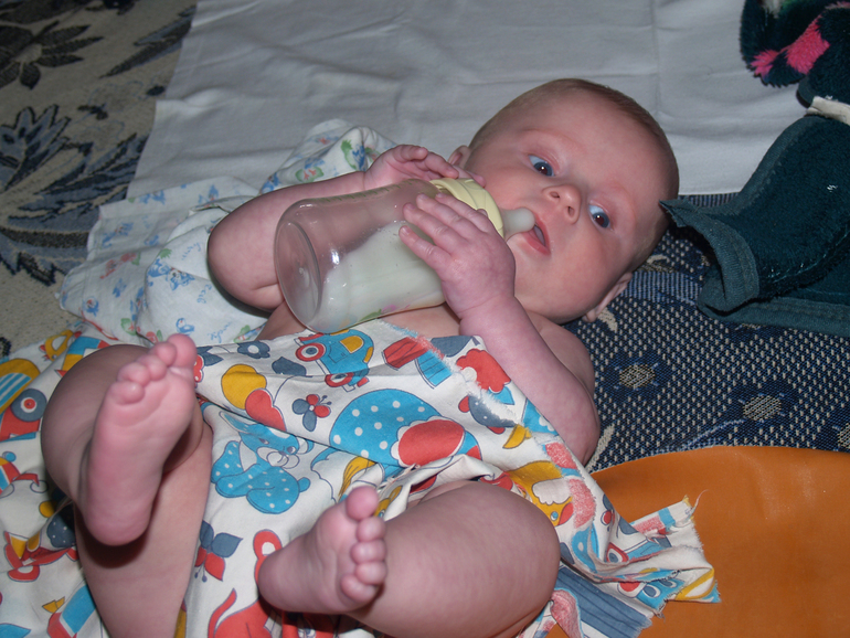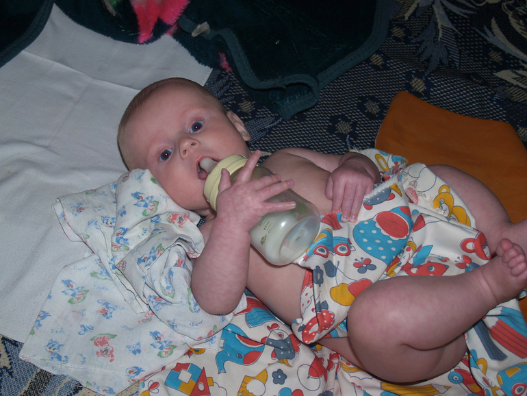 Еще с рождения сынок проявлял характер и буйно протестовал против какого-либо принуждения, например, если мне нужно было, чтобы он полежал на боку, а ему не хотелось. И сейчас это проявляется уже в полной мере, он всегда добивается, чего хочет, воспитывает маму...С папой, правда, такой номер не проходит. С трех месяцев начал проявлять самостоятельность, вначале помогал мне держать бутылочку при кормлении, потом гневно отдирал мои руки и пытался держать бутылочку сам, но сразу ронял ее и начинал орать. А вчера, только я дала ему бутылочку, а он схватил ее сам и ловил ртом соску. Неуклюже, правда, и в глаз и в нос себе несколько раз зарядил, но САМ и даже не уронил ни разу. Его старания продолжались минут 10, удалось даже высосать немного молока, но при этом он не плакал и не сдавался!))) Я сама не выдержала и помогла ему направить бутылочку, чтобы он доел.![]()