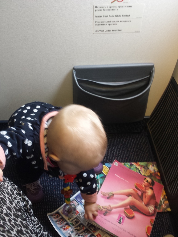 На взлете Лиза уснула и поспала примерно часок,а потом проснулась и веселила публику, ходила по проходу и заигрывала с пассажирами. Звездила как обычно