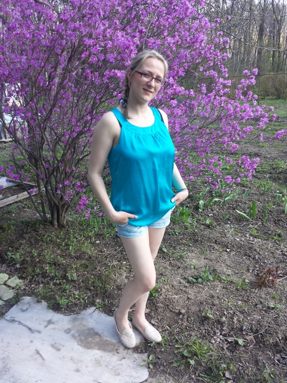 . Лиза немного опешила,но с интересом смотрела на это зрелище. 10 мая мы поехали на дачу. Была шикарная погода и я смогла даже походить в шортах и майке (а то зря везла чтоли)