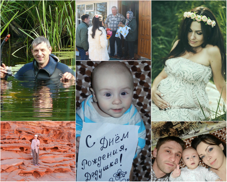 Делали открытку моему дедуле на ДР. Это мы с мужем и сыном, мои родители, ну и бабуля с дедом на свадебной фотке: