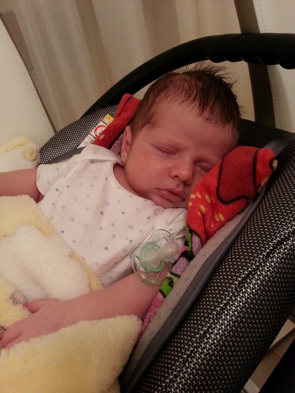 Наш месяц был 16-го числа, отметили его втроём: я, муж и Марк. Съездили на новую Набережную Трибуца, погуляли, потом покормила в машине и поехали в кафе - очень понравилось втроём))Марк не спал, смотрел по сторонам и слушал музыку))) В больницу ходили в четверг, набрали 900 грамм от выписанного веса) Родились 3790, выписались 3490, сейчас 4400, но рост нам намерили такой же как ив рд...вот мне интересно, как они так мерят??ещё и мед.сестра на моё "Как 55?мы родились с таким ростом", сказала: "Ну 55 см., вы точно не могли родиться"....ну по одежде то видно что вырос, я намерила дома 57 см., посмотрим что намерят нам в 2 месяца) тем более педиатра на нашем участке нет, и ходим мы по дежурным. Это вообще дурдом, 2-3 участка к одному педиатру, и главное помимо грудничков были и взрослые дети...в очереди к педиатру просидели мы 2 часа, хорошо что Марк спал)))