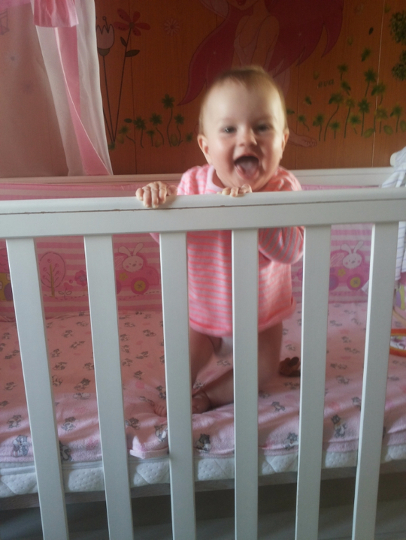 Вес 9200, рост - не знаю ))) Моя любимая уже сидит и садится сама. Встала у опоры и ползает со скоростью света. Сегодня вылез наш третий зубик сверху.