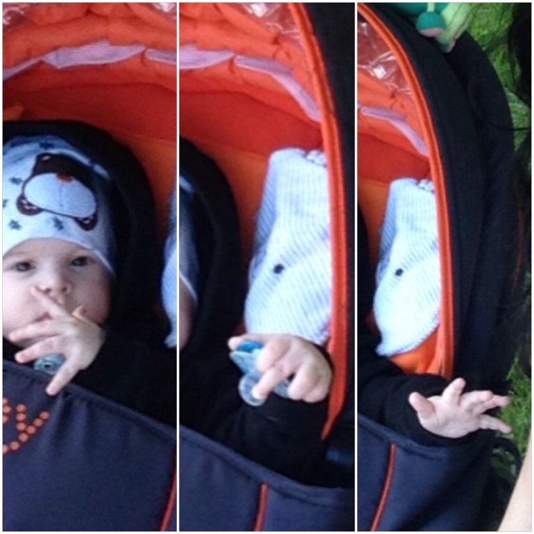 Бросает игрушки, очень ему нравится это увлекательное занятие. Делала селфи с сыном в парке под цветущим деревом, потом на фотках увидела вот это: