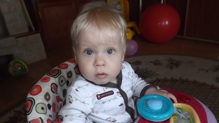 Из умелок: особо ничего в голову не приходит. Пьет из трубочки давно. Научился дудеть в дудку. Нет - головой вертит, пока - машет. Говорит папа, баба, дай, на ( нане -по цыгански), мама. Знает, как мишка рычит, смешно так получается. Ав - проскальзывает, когда во дворе собака наша лает.