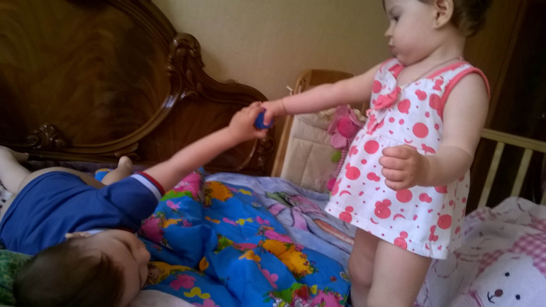 У Марьяши есть два друга, одному 1,3 года, второму 1,10. Очень хорошо играет с ними. Сфоткать тяжело, постоянно в движении: