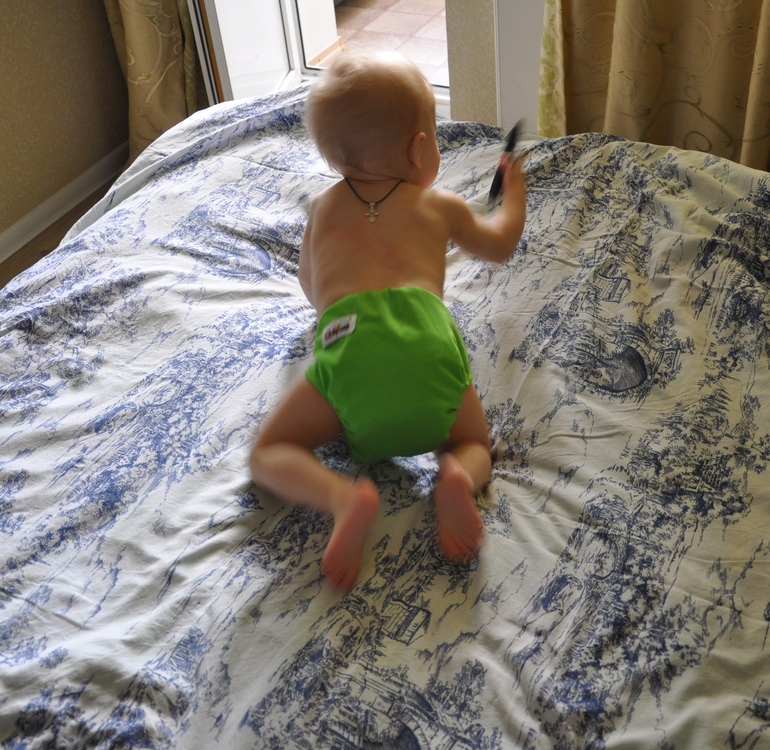 Тут мы конечно немного припоздали, и идеально такая система подходит для более неподвижных малышей, а нам бы лучше использовать Дисановские трусы, но даренной Дисане "в зубы не смотрят", поэтому наматываю эту эпидерсию на сына на дневной сон, так как система не дает протечек и можно быть спокойной за сухость в кроватке. Несмотря на внешнюю хлипкость системы, сидит хорошо и не спадает даже с моего подвижного сына, но для приучения к горшку не подходит, так как наматывать туда/сюда все это на моего шилопопа никакого терпения не хватит.