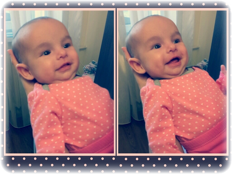 Очень переживала, что она у нас прям Царевна Несмеяна какая-то, ну оооочень серьезная дама. Читала что детки у многих уже улыбаются в месяц и полтора, а наша Леська прям ни в какую! Я уже что только не делала, и рожицы строила, и песенки пела, и щикотала ее, и танцевала перед ней по всякому. Неа. Никак. Только во сне улыбалась, а мне так хотелось увидеть ее улыбку, настоящую и осознанную. И вот сегодня это свершилось! Она первый раз улыбнулась, моей маме, своей бабушке, так красиво и мило...Это было прекрасно! Мы с мамой даже растрогались и заплакали... Восхитительное чувство! Как я это ждала! Ура! Обожаю эти щечки и маленькие ямочки!!!
