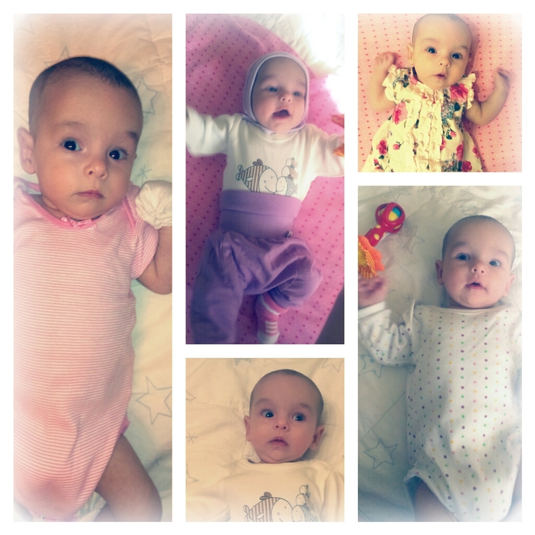 ЗнакомимсяВсем привет! Ровно два месяца и один день назад, 1 апреля, появилось на свет это крохотное беззащитное создание! Моя доченька Олеся. И не верится, что она уже такая большая)))) Хотя как большая...весим мы всего 4000, моя большая дюймовочка, рост будем измерять завтра на приеме )) С каждым днем становится все интересней. Мы можем подолгу с ней общаться и она активно гулит мне в ответ - аааай, ау, аКу, ииих и прочие забавные звуки)). Тянется ручками к погремушкам и будто бежит за ними, так мило :) Сегодня даже немного держала в ручке свою любимую погремуху - цветочек Tiny Love, для нее это как настоящая гантеля ))) А еще доча поняла что у нее есть кулаки и что они чрезвычайно вкусные! Узнает нас с мужем и родных, следит за мной когда я хожу по комнате, своими карими глазками... Стала хорошо спать ночью и днем, про колики мы забыли, надеюсь. В круге купаемся мало, он ей большеват немного и она его пока не оценила ))) Любит гулять и из коляски рассматривать окружающий мир - деревья, облака... Голову держит вертикально, болтается правда немного, но доченка очень старается. А вот на животе голову только поворачивает из стороны в сторону, не поднимает к сожалению, и все еще ооочень пытается ползти. Можно даже руки под стопы ей не подставлять - ползет)) Еще стала плохо какать, помогаем раз в 4 дня глицериновой свечкой, но врач говорит что это в целом нормально и все пройдет.
