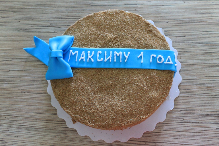Потом пообедали и пошли за тортиком. Торт я заказывала обычный медовый, так как муж отказался кушать мастику :) Получилось "дёшево и сердито"