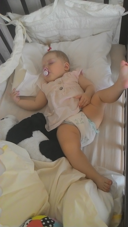 Мама клоуном устроилась)))Спит часто на улице,тяжело теперь уложить,но у меня все таки получается))теперь с положения сидя никак))В новой да,я специально так покупала чтоб удобно было спать)