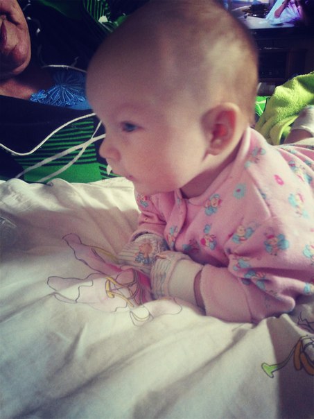 Орём, когда хотим есть или лежим в каканом подгузнике (ну или в совсем мокром), когда жарко. Когда холодно молчим, но икаем. Голову держит уже более менее, но ещё не уверенно. А я всё жду, когда же она уже сядет или вообще заходит ножками. Хотя говорят что тогда от ребёнка вообще не отойдёшь, но а так лежит она и лежит..и кажется, что ей так скучно =))