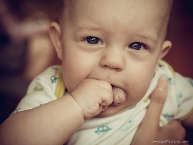 Зубы: ноль штук. Но уже месяц как светятся два нижних резца.периодически набухая,краснея и причиняя массу неудобств Ромычу. Ромыч активно заливает слюнями уже даже соседей снизу,грызет маме скулы,руки и подбородок. Себе грызет руки. Грызет грызунки. Грызет все,что попадается на его пути,короче.