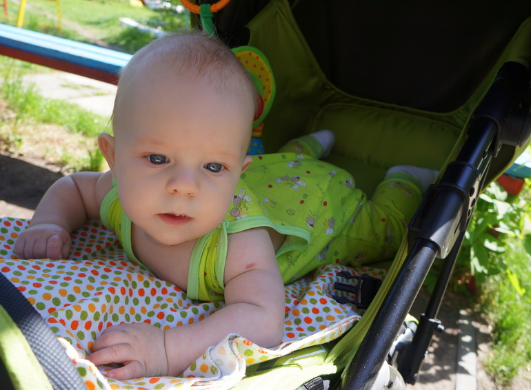 У Вас смотрю коляска уже полусидя. Наш тоже не сидит. Значит можно уже в таком положении ездить?