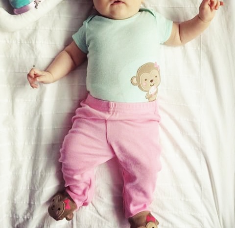 - научились переворачивать со спинки на животик через правый бочок; через левый тоже пытается, но пока получается плохо;