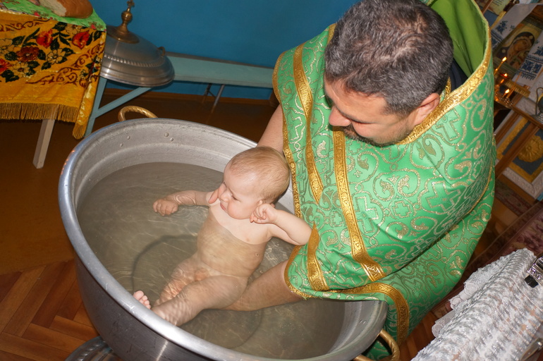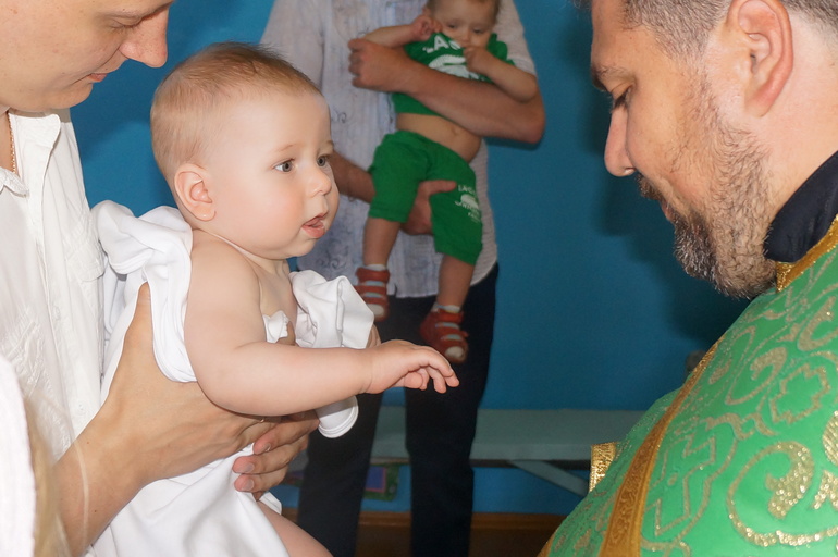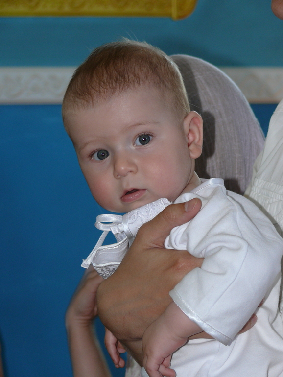 Очень переживала за Сеньку, как он будет себя вести, будет ли капризничать. Вел себя отлично, правда как стали окунать в купель немного захныкал! Все прошло на ура! И немного фото