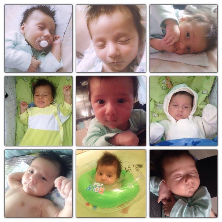 Влад уже хорошо держит голову и хватает все, что дотронется до его рук. Сам пока не тянется, но уже прогресс! Буквально за 2 дня до 3х месяцев начал попытки перевернуться. Пока неумело: отталкивается ногой, перекидывает руку, потом ногу... и все в общем-то хорошо, но вот вторая рука пока мешает, не дает перевернуться полностью. Поэтому мы зависаем в перекрученной позе и начинаем жутко беситься! Особенно, когда кушаем. Перевернется, грудь выронет и истерить начинает)) Агукает, гычет, акает, укает, когда плачет получается мамамама. Женщина в поликлинике, услышав, как Влад мамакает, предрекла нам вторую обязательно девочку) В общем-то, других умелок пока нет. Хотя наконец начала чувствовать отдачу. Когда Влад у бабушки на руках, а я только захожу в комнату, Палыч начинает улыбаться во весь свой беззубый рот. Мое сердце, мне кажется, даже биться перестает на какое-то время от счастья))) Спим днем все еще на ручках, да и вообще выдерживаем одиночество минут 15 максимум, потом срочно нужна мама, а не всякие там игрухи-развлекухи) В коляске спит минут 40 и все, срочно познавать мир опять же с моих рук! Сск уже не спасает абсолютно, спина отваливается, да и не доверяю я вертикальной позицие в нем, как-то кособоко у меня выходит, боюсь за детин позвоночник. На днях приехал к нам рюкзако-май от ТеддиСлинг. И мы даже успели уже в нем погулять. Через 5 минут прогулки Влад благополучно заснул и проспал больше 2 часов. Надеюсь, это не случайность и май действительно ему пришелся по нраву))