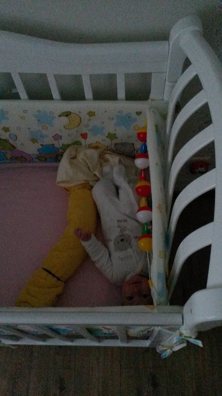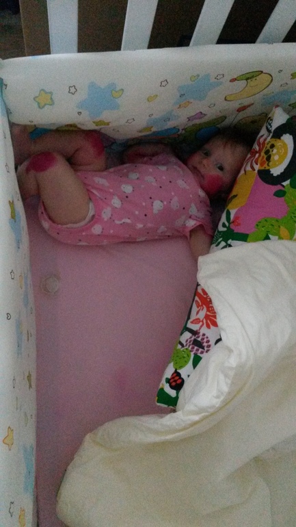 Спит все так же в большой кровати. Перемещается во сне по ней как на свободном выгуле, но в основном я нахожу ее поперек)))