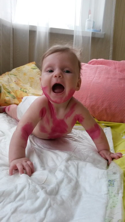 Боролись с аллергией снова. В этот раз она не хотела нам сдаваться 1.5 месяца. Но мы ее победили. Правда, я так и не поняла на что она у нас была, рацион я не меняла. Помог крем элидел и фукарцин. Это он такой розовый)))