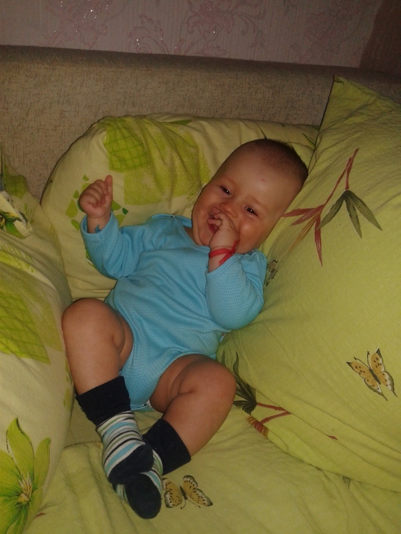 Рост, весКак же быстро растёт мой малыш! Лежу я сейчас в кровати и разглядываю моего любимого зайченка! А точнее то как он спит))) рассказ и много фото под кат... время прошло быстро! Сына растёт здоровым толстичком))) 13 числа нам исполнилось 6 месяцев. Сегодня были у врача, итог такой: весим мы 8200, рост 70 см! Начинают прорезатся нижние зубки! Десны набухли, все пробуется на зубок!а точнее на десну))) , и конечно же слюни рекоооооой! Умелок у нас много! Сидеть мы любим! Уже начинает держатся за бампер коляски когда сидит))) такой смешной! Упирается хорошо на ножки! Иногда когда играем ставлю его на ноги секунд на 10 , ему это очень нравится! сразу улыбка до ушей!))) с переворотами у нас все так же проблемы... На живот легко, а с живота на спину ну никак ему не даётся... Говорит ма-ма ма-ма-ма-ма))) надеюсь что это сознательно, хоть и понимаю что нет))) пытается ползать! Получается по пластунски ,но уже что-то))) за один месяц у него большой скачок в развитие! Видимо это и есть причина плохого сна ночью... Муж на его выходной вывел нас к бассеину за город! Даже не думала что сынуля так хорошо себя вести будет! Отдохнули отлучно! Зайчик кушал, игрался, баловался в своем маленьком бассеине и спал мирно у себя в колясочки! Наш лапуня ни разу не хныкнул, не заплакал! Люблю его больше жизни!!! А ещё нам сегодня поставили прививку!... Весь день хныкал, вредничал... хоть температуры не дало,но он вялый и обиженный... Заснул рано! В 20.00 где-то... Спит хорошо, начинает вертется, даю грудь и он засыпает дальше... Нормально ли это? Я волнуюсь! А вот и парочку наших фото!