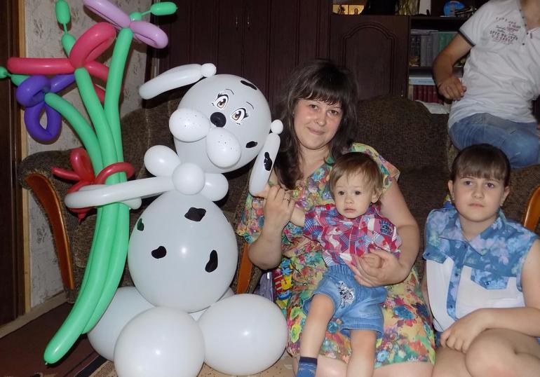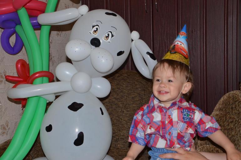 Для сынули еще собаку из воздушных шаров, он вообще обалдел, когда ее увидел